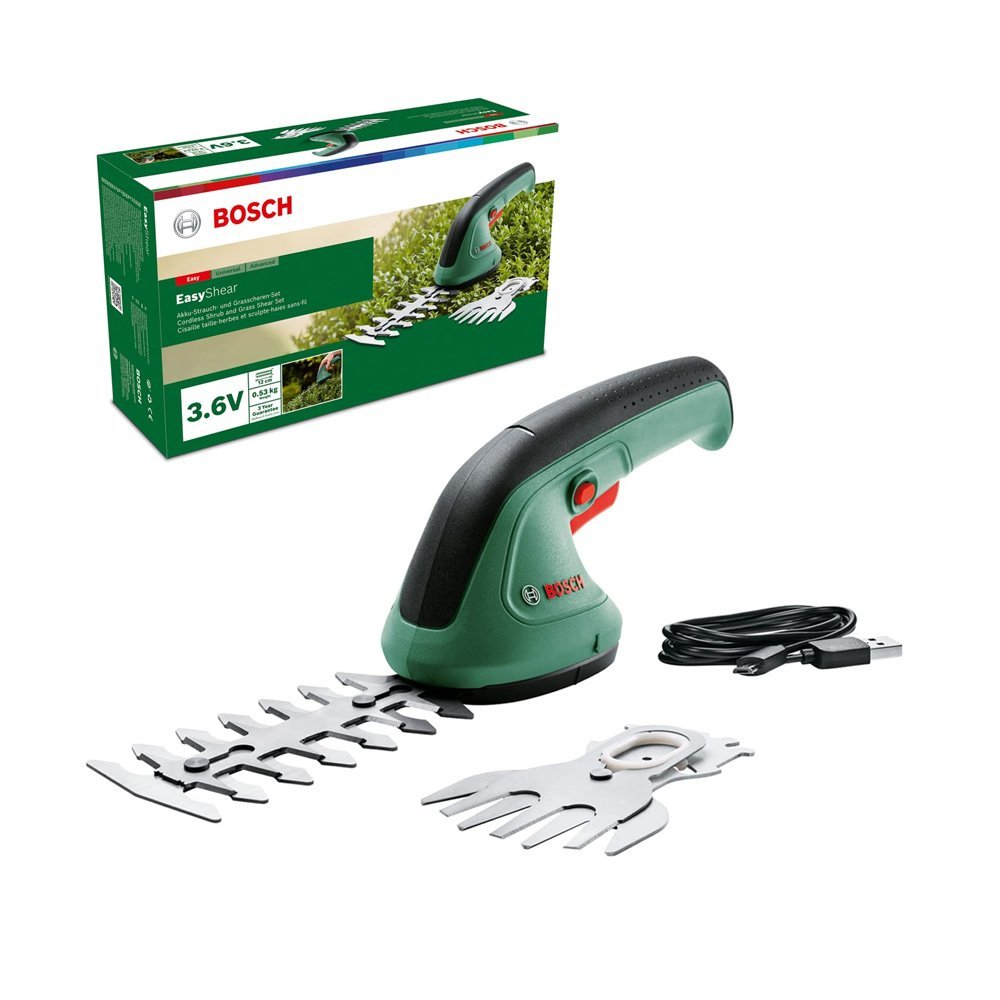 Bosch Garden Shears EasyShear (Integrated 3.6V, Battery Runtime: 40 Min, Blade Length: 12cm (Shrub) / 8cm (Grass), in Carton Packaging) Green 20 X 20 X 20 Centimetres